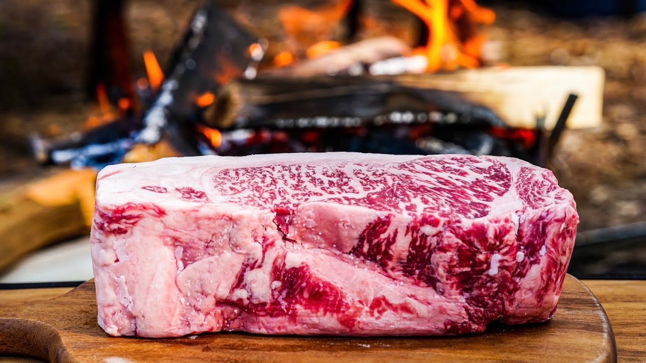 キャンプに来たので分厚い和牛ステーキを焚火で豪快に焼き上げました。自然の中で作って食べる料理と美味しいお酒。割とマジで最高です。