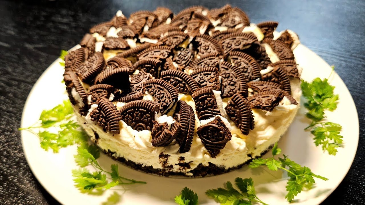 47%生クリーム200cc、ハンドミキサーで撹拌し10分立て、クリームチーズも滑らかに撹拌したら、砂糖35g、粗く砕いたオレオ60g、レモン汁大さじ1、ラム酒大さじ1を加え全てを合わせたら型に流す。
